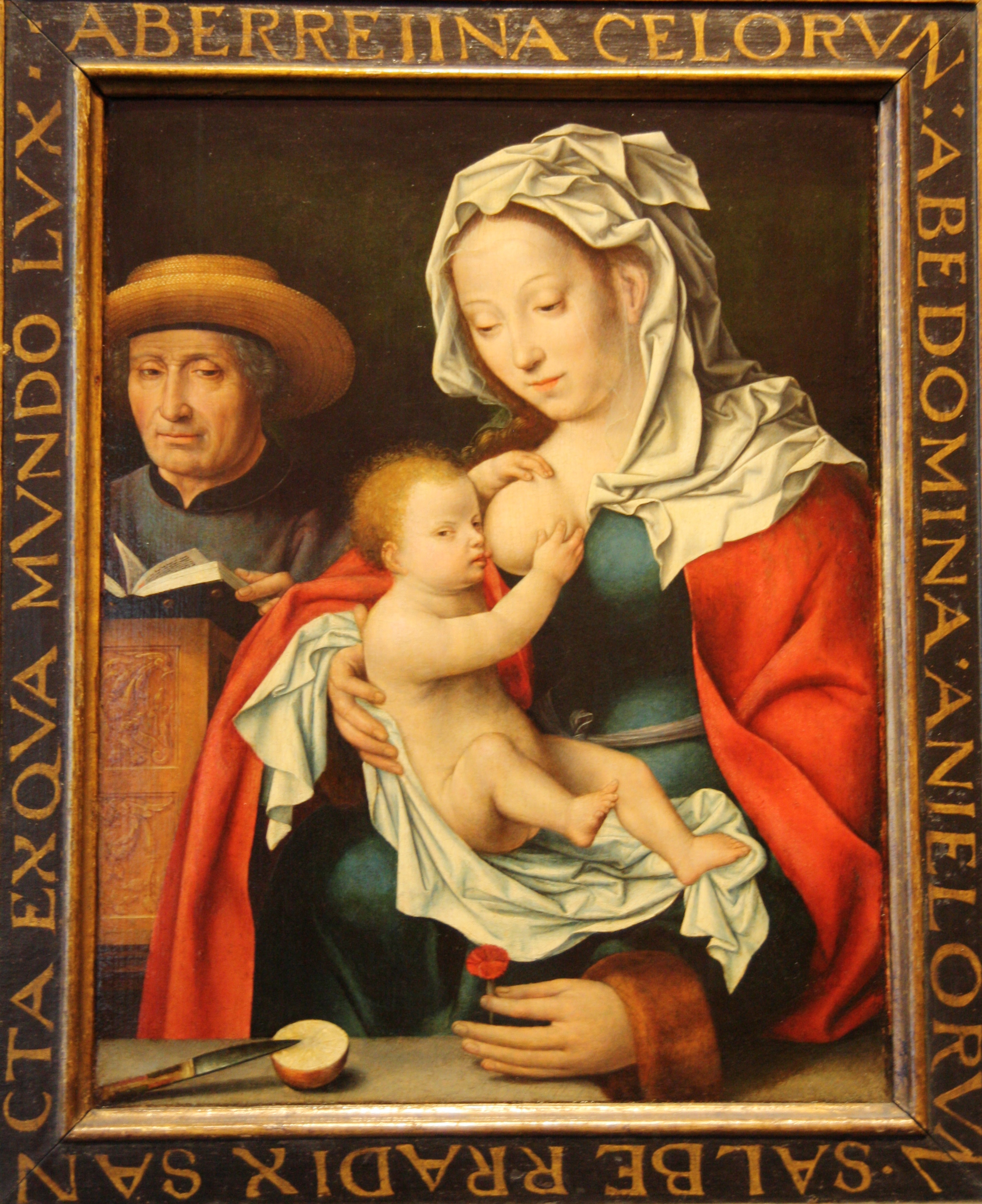 And the beautifully framed painting by Joos van Cleve of Mary with Christ circa 1515 depicted as above.